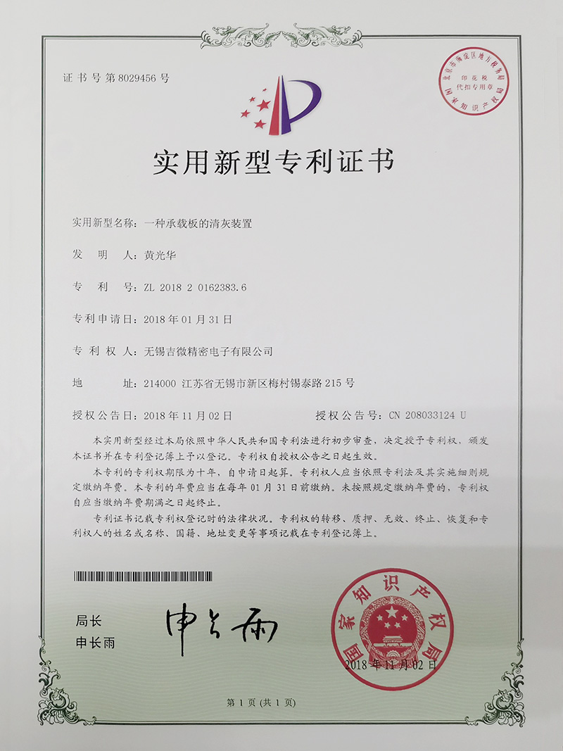 一種承載板的清灰裝置實(shí)用新型專(zhuān)利證書(shū)